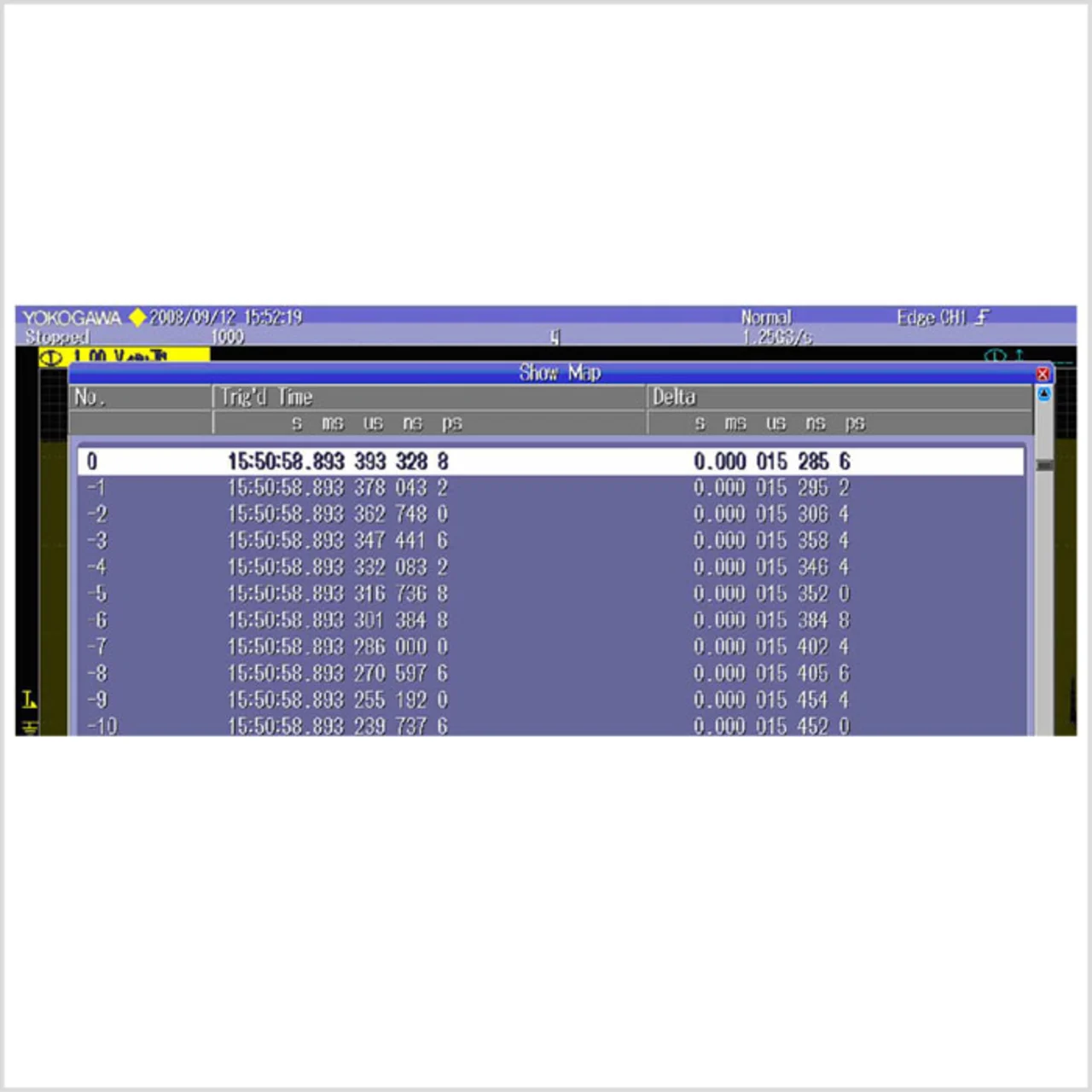 Außerdem wurde die Zeitstempel-Information der History-Funktion gegenüber früheren Realisierungen verbessert. Früher betrug die Auflösung des Zeitstempels akquirierter Kurven im History-Speicher 10 ms. Das hatte zur Folge, dass die Zeitstempel verschiedener History-Seiten, die in einer „N-Single“-Folge akquiriert wurden, gleich waren. Jetzt lassen sich die Zeitstempel proportional zur Abtastrate mit Auflösungen bis zu 50 ns anzeigen (Bild 8).