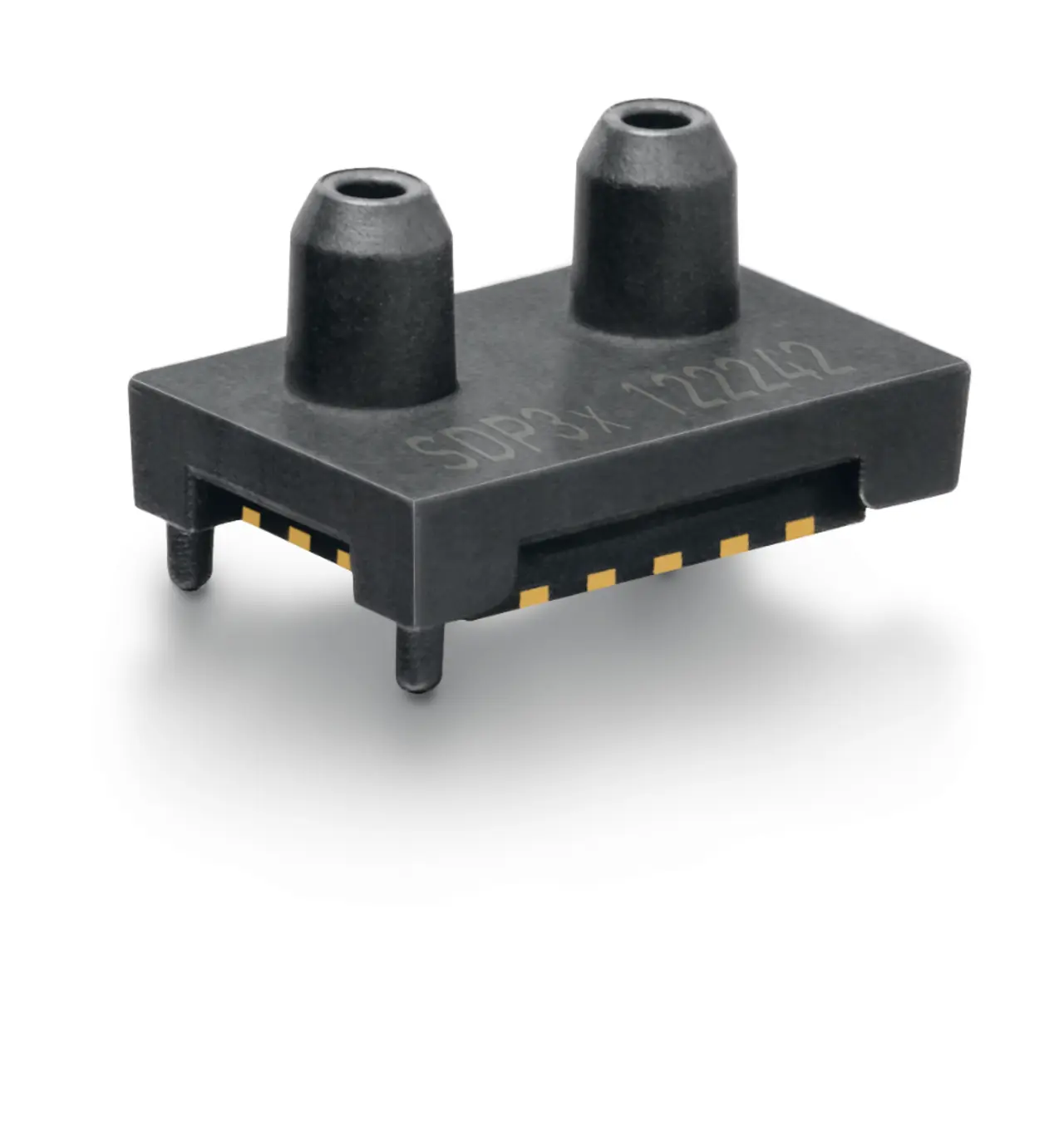 Der SDP3x ist der weltweit kleinste Differenzdrucksensor (Bild 3). Er misst nur 8 × 5 × 5 mm³ und ermöglicht damit neue Integrations- und Anwendungsmöglichkeiten beispielsweise im Bereich der Heimpflege (portable Geräte). Der Sensor ist reflow-lötbar, bietet erweiterte Funktionen wie mehrfache I²C-Adressen oder Interrupt-Funktionen, und hat eine sehr schnelle Ansprechzeit. Der SDP3x ist frei von Nullpunktdrift.
