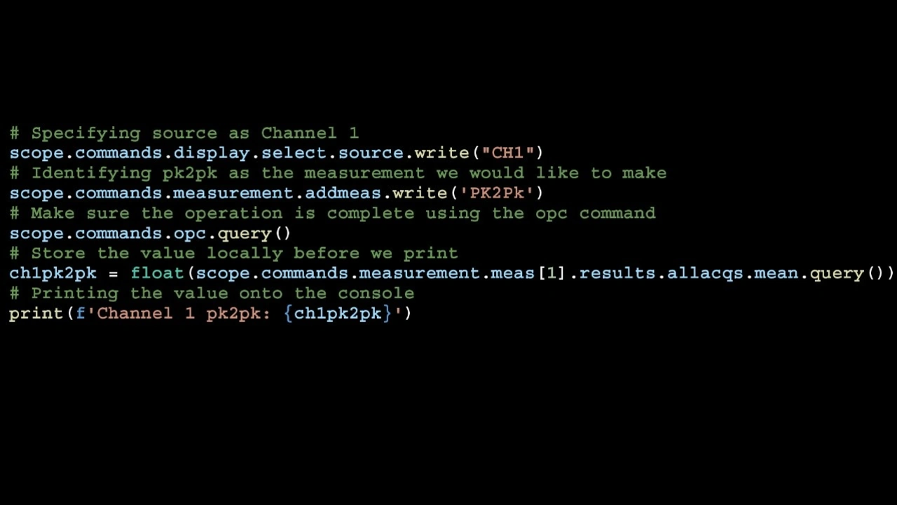 Benutzerdefinierte Automatisierungsprogramme kommunizieren mit Oszilloskopen über die programmatische Schnittstelle (PI) des Geräts, die eine Reihe von Befehlen und Abfragen definiert. Für Tektronix-Oszilloskope und viele andere basieren diese Befehle auf dem SCPI-Format (engl. „Standard Commands for Programmable Instrumentation“). Die PI-Befehle werden häufig über eine VISA-Schicht (engl. „Virtual Instrument Software Architecture“) gesendet. VISA erleichtert die Kommunikation, indem sie die gleichen Lese-, Schreib- und Fehlerprüfungen ermöglicht, unabhängig davon, ob es sich bei der physischen Schnittstelle um USB, Ethernet, RS-232 oder GPIB handelt.