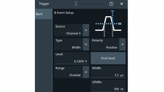 ➔ Konfigurieren des Triggers B als Breitentrigger und Einstellung der Breite sowie der Deltazeit (Bild 4)
