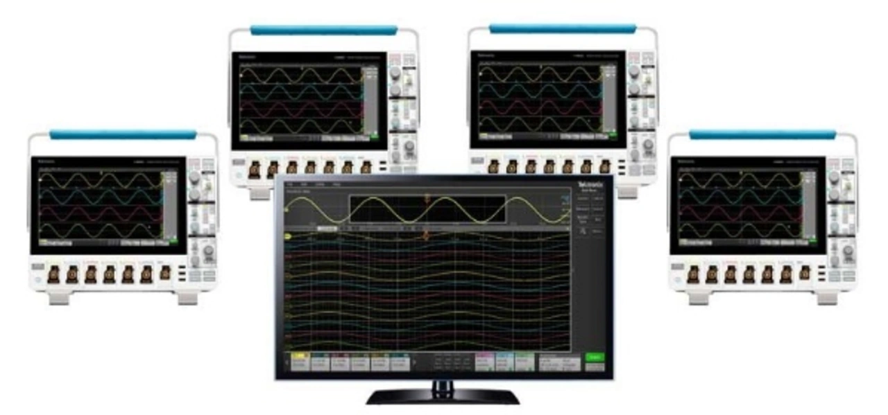 Verwandeln Sie bis zu vier Oszilloskope in ein einziges virtuelles Gerät. Anzeigen und Analysieren von Daten aus mehreren Oszilloskopen auf demselben Bildschirm mit einem einzigen Satz von Steuerelementen.