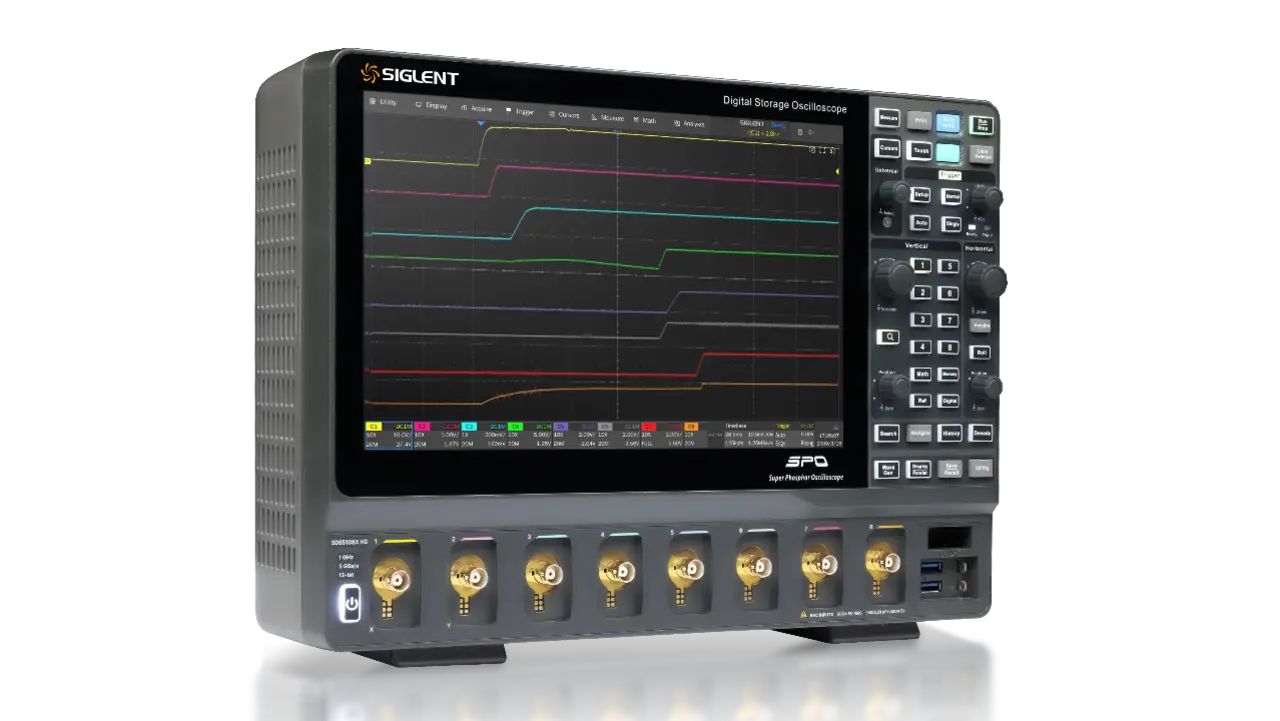 Mit SiC- und GaN-Bauelementen verändern sich die Anforderungen an die Messtechnik grundlegend. Die deutlich steileren Schaltflanken und höheren Schaltfrequenzen dieser Halbleiter erfordern Messsysteme mit hoher Bandbreite, niedrigem Eigenrauschen und exzellenter Signaltrennung. Für die präzise Erfassung dieser schnellen Übergänge eignen sich Oszilloskope wie die Serie SDS5000X HD von Siglent mit bis zu 1 GHz Bandbreite und 12-Bit-Auflösung ideal. Sie ermöglichen eine saubere Darstellung selbst feinster Schaltvorgänge und Überschwingungen.