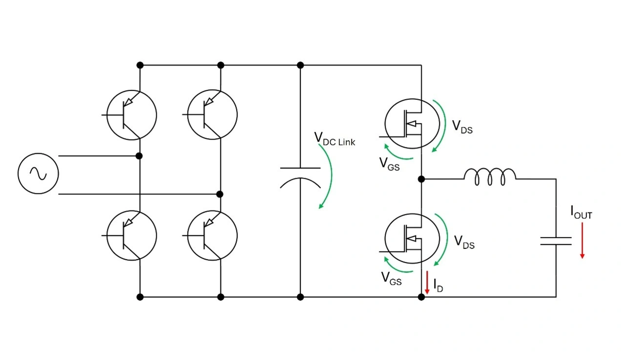 Im Zentrum jedes Konverters oder Inverters befindet sich die „Schaltzentrale“: Hier findet die eigentliche Umwandlung (DC/AC, AC/DC, DC/DC) und Regelung (Ausgangspegel) statt. Diese Schaltungen bestehen meist aus Halb- oder Vollbrücken, die mit leistungsstarken Transistoren wie MOSFETs, IGBTs oder neuerdings mit SiC oder GaN bestückt sind und von Gate-Treibern angesteuert werden. Die Transistoren schalten Strompfade mit hoher Frequenz ein und aus und steuern so gezielt den Energiefluss – und somit die Umwandlung und den Ausgangspegel bzw. -strom.