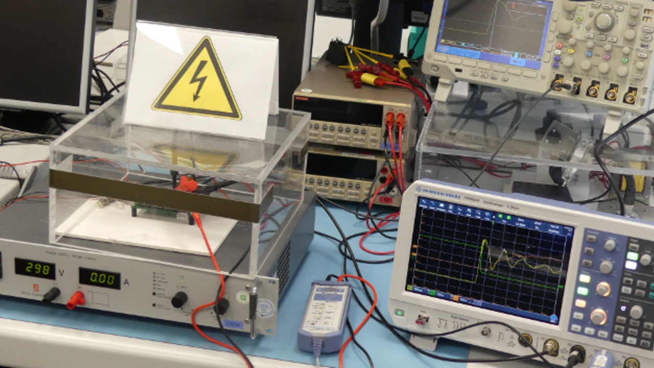 Klaus Reinmuth: Mit dem Oszilloskop stießen wir bis an die Grenzen unseres Aufbaus – wir haben den Einfluss von parasitären Kapazitäten im Aufbau und von Induktivitäten auf die Masse feststellen können – diese Grenzen konnten wir gut ausloten. Weiterhin konnten wir nachweisen, dass es sehr geringe Schaltverluste gibt, speziell die Einschaltverluste bei Raumtemperatur, bei 300 V und bei maximaler Geschwindigkeit haben hier Werte von 50 µJ bzw. etwa 6 µJ erreicht.