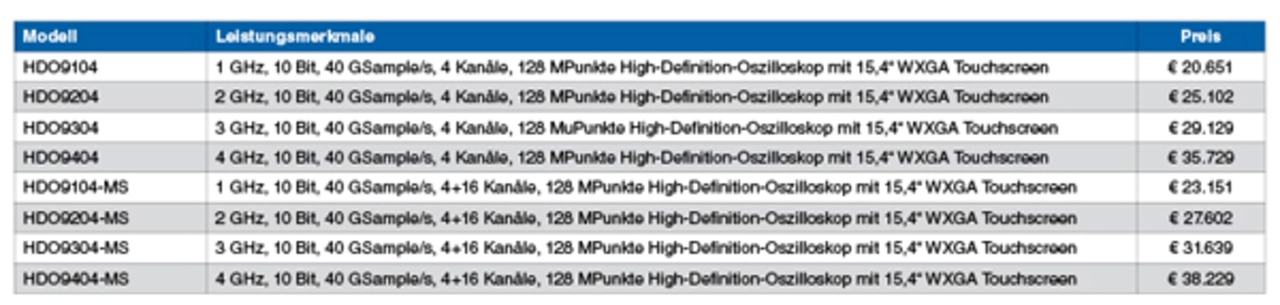 Standardmäßig bringen alle neuen Varianten einen Speicher von 128 MPunkten mit. Damit steht bereits in der Grundausstattung ein ordentlicher Speicher zur Verfügung. Teledyne LeCroy verzichtet dabei bewusst auf die gängige Praxis, in der Basisversion einen kleineren Speicher zu verbauen, der per Aufrüstoption erweiterbar ist.