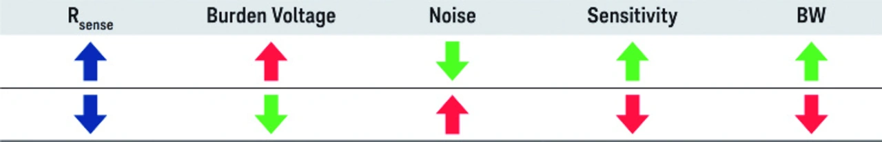 Es kann sich als schwierig erweisen, den richtigen Messwiderstand für das jeweilige Gerät auszuwählen, jedoch ist dies wichtig, um verschiedene Strombereiche und -eigenschaften genau zu messen. Verwendet man einen größeren Widerstand, erhält man ein hervorragendes Signal-Rausch-Verhältnis, was zu genaueren Messungen führt. Der Nachteil eines größeren Widerstandswertes ist der unerwünschte Spannungsabfall, der durch eine erhöhte Verlustleistung am Widerstand verursacht wird. Die Verwendung eines kleineren Messwiderstandes verringert die Verlustleistung und damit den Spannungsabfall. Dieser niedrigere Widerstandswert weist jedoch auch Nachteile auf, insbesondere hinsichtlich der Messgenauigkeit. Bild 4 zeigt, ob ein hoher oder niedriger Widerstandswert für das jeweilige Mess-Szenario geeignet ist.