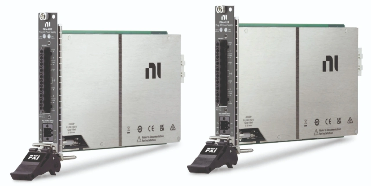 Beispiele für erweiterbare PXI-PPS-Bundles mit 120 Watt Leistung für den Prüfling sind das 867117-01 mit einem PXIe-4112-Zweikanal-PPS (wie Modell 782857-01), das maximal 1 Ampere (A) bei 60 Volt DC pro Kanal liefern kann, und das 867118-01 mit einem PXI2-4113-Zweikanal-PPS (wie Modell 782857-02) , das bis zu 6 A bei 10 Volt DC pro Kanal liefern kann (Bild 3).