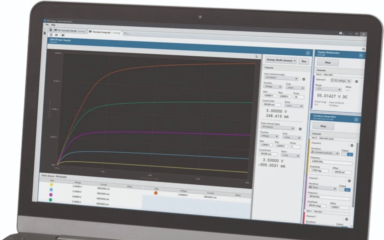 Zusätzlich zu den breit gefächerten Hardwaremodulen bietet NI eine Auswahl an Softwareentwicklungsumgebungen an, darunter InstrumentStudio und LabView.