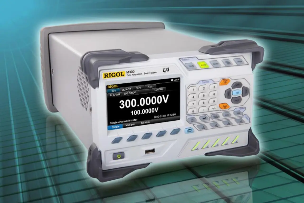 Das modulare Datenerfassungs- und Switch-System Rigol M300 (Bild 6) ist deshalb recht interessant, weil es präzises Messen mit flexibler Signal-Verdrahtung für viele Kanäle verbindet. Die fünf Slots des Systemchassis können nach Bedarf mit verschiedenen Modulen bestückt werden, inkl. einem präzisen 6½-Digit Multimeter. Das Chassis eignet sich für Testsysteme mit vielen Messpunkten/Signalen, insgesamt sind bis zu 320 Switch-Kanäle pro Gerät möglich. "Interval-Scanning" mit der Speicherung von bis zu 100.000 Messwerten mit Zeit-Stempel ist ebenso möglich wie die Kaskadierung mehrerer Geräte. Einsetzbar ist das Chassis sowohl mit einem steuernden PC als auch unabhängig vom Rechner; außerdem lässt es sich als reines Schalt-System (fünf Slots) oder als kombiniertes Mess- und Schalt-System mit Digital-Multimeter-Modul (ein Slot für das Multimeter, vier Slots für Schalt-Module) bestückt werden. Es stehen zehn Modul-Typen zu Auswahl, darunter 32- und 64-Kanal-Multiplexer oder Reed-Multiplexer, Mix-Multiplexer (20 Spannungskanäle, vier Stromkanäle), 16 SPDT-Schalter und ein 4x8-Zweidraht-Matrix-Schalter.
