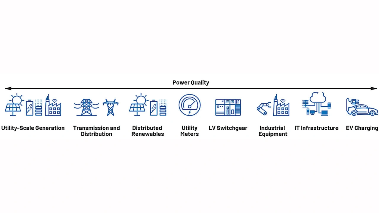 Das Überwachen der Spannungsqualität wird in einigen Geschäftsfeldern als reine Kostensenkungsstrategie betrachtet, während sie in anderen Bereichen als unerlässlich gilt. Wie aus Bild 2 hervorgeht, kann es in einer breiten Palette elektrischer Infrastrukturen zu Problemen mit der Spannungsqualität kommen. Weiter unten wird noch genauer darauf eingegangen, dass das Überwachen der Spannungsqualität in bestimmten Bereichen immer kritischer wird – so zum Beispiel bei der Erzeugung und Verteilung elektrischer Energie, beim Laden von Elektrofahrzeugen, in Fabriken und in Rechenzentren.