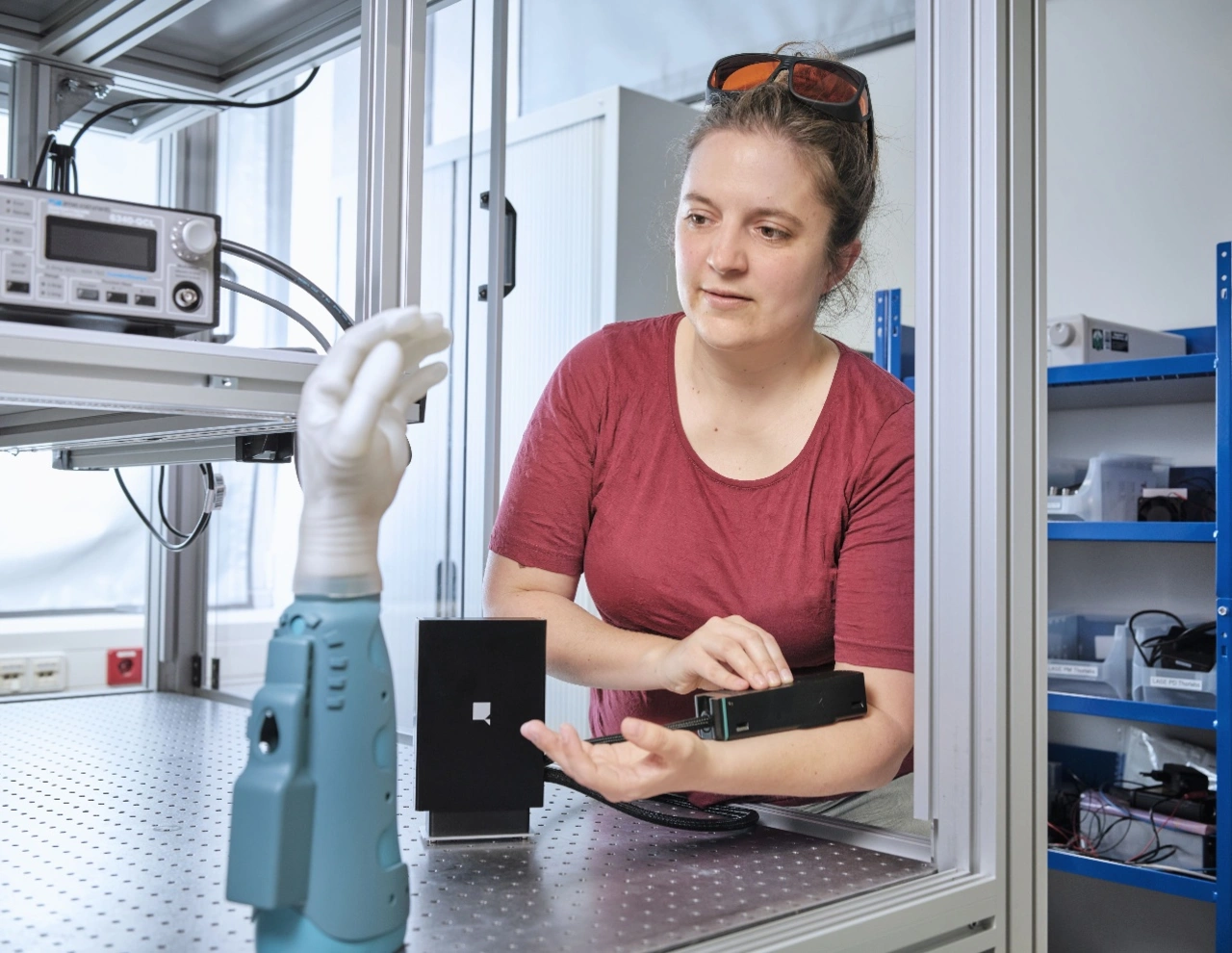 Den ersten Prototypen des »Q.M 10« stellt Q.ANT auf der diesjährigen COMPAMED in Düsseldorf vor und will damit die Erfassung und Verarbeitung von Biosignalen in der Medizintechnik neu definieren. Durch die innovative Nutzung von Licht als natürlichem Informationsträger eröffnet der »Q.M 10« Forschern tiefere Einblicke in die Biosignale des menschlichen Körpers und verspricht, die Grenzen des Möglichen in der Medizintechnik zu erweitern: Zum Beispiel Prothesen mit Gedankenkraft, fast wie natürliche Gliedmaßen, zu steuern. Ein solches Prothesensensormodul entwickelt Q.ANT in Zusammenarbeit mit dem Fraunhofer IPA.