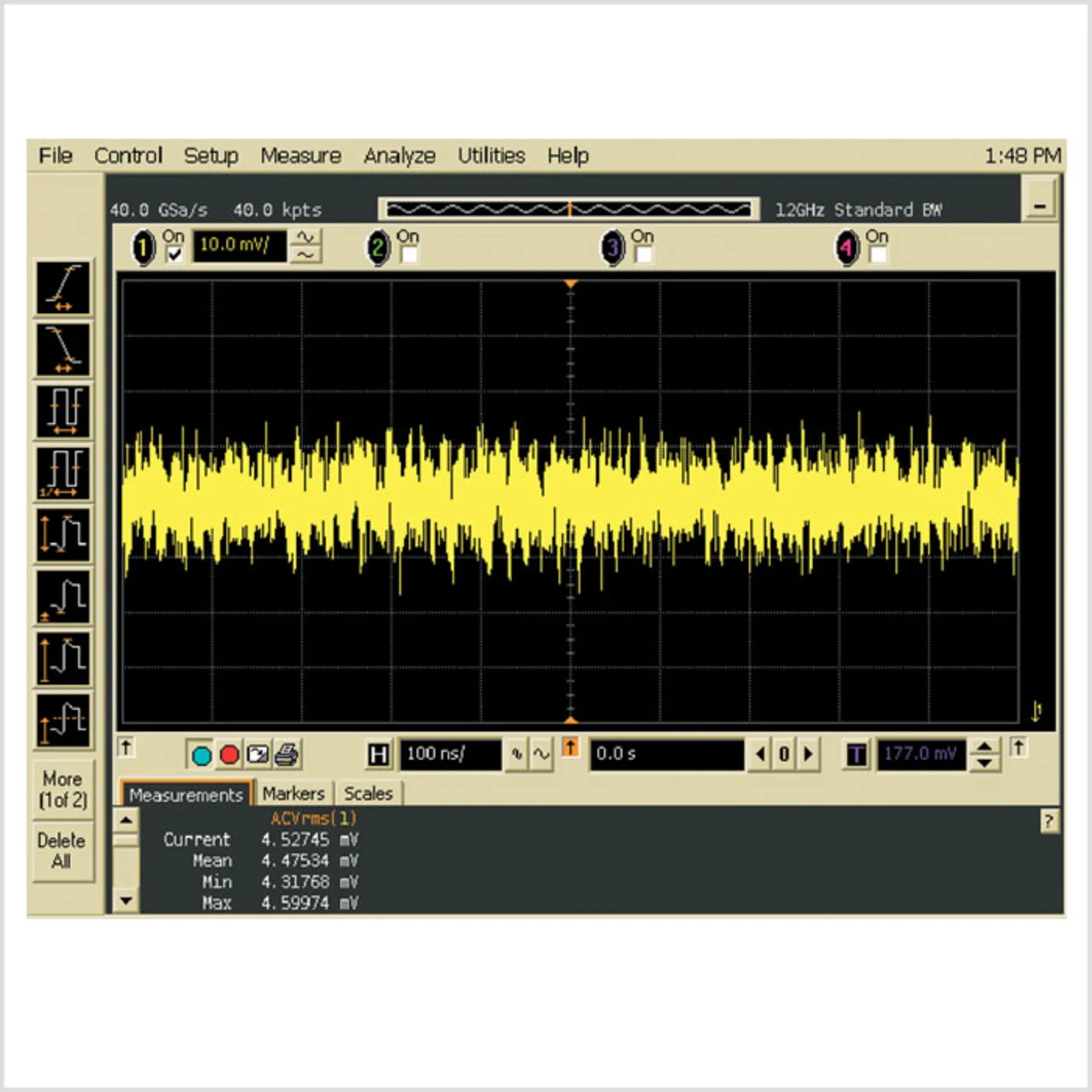 Entwicklungsingenieure greifen normalerweise zum Oszilloskop, wenn sie Störspannungen auf der Betriebsspannung messen wollen, weil solche Effekte grundsätzlich breitbandiger Natur sind. Oszilloskope können einen einzigartigen Einblick in die Natur von Störspannungen bieten. Leider haben breitbandige Digitaloszilloskope und Oszilloskop-Tastköpfe ein gewisses Eigenrauschen, das man nicht vernachlässigen darf. Wenn die zu messenden Störspannungen der Stromversorgung in der gleichen Größenordnung liegen wie das Eigenrauschen von Oszilloskop und Tastkopf, muss der Entwickler bei der Messung der Störspannungen besonders überlegt vorgehen.