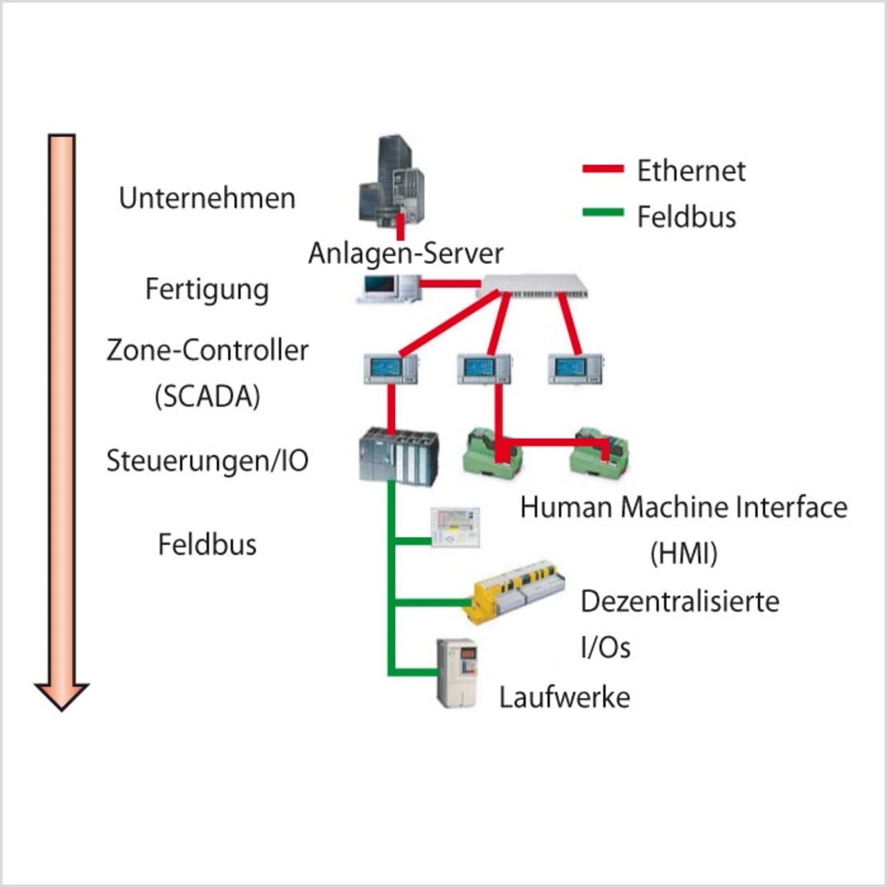 In vielen industriellen Netzwerken finden sich ein oder mehrere Ethernet-Protokolle, die eine Reihe von Applikations-Anforderungen erfüllen. Heute kommt industrielles Ethernet vom Unternehmensserver bis hinab zur Steuerungsebene zum Einsatz (Bild 1). Unterhalb dieser Ebene übernehmen meist Feldbus-Protokolle die weitere Kommunikation. Die Erweiterung der Ethernet-Anbindung in traditionelle Feldbus-Bereiche – auf HMI-Ebene und zu einzelnen Antrieben und Sensoren – bringt die Vorteile von Ethernet näher an die Fertigungslinie bzw. den -prozess. Zu den Vorteilen zählen eine schnellere Kommunikation, mehr Sicherheit und eine größere Geräteauswahl mit mehr Interoperabilität.