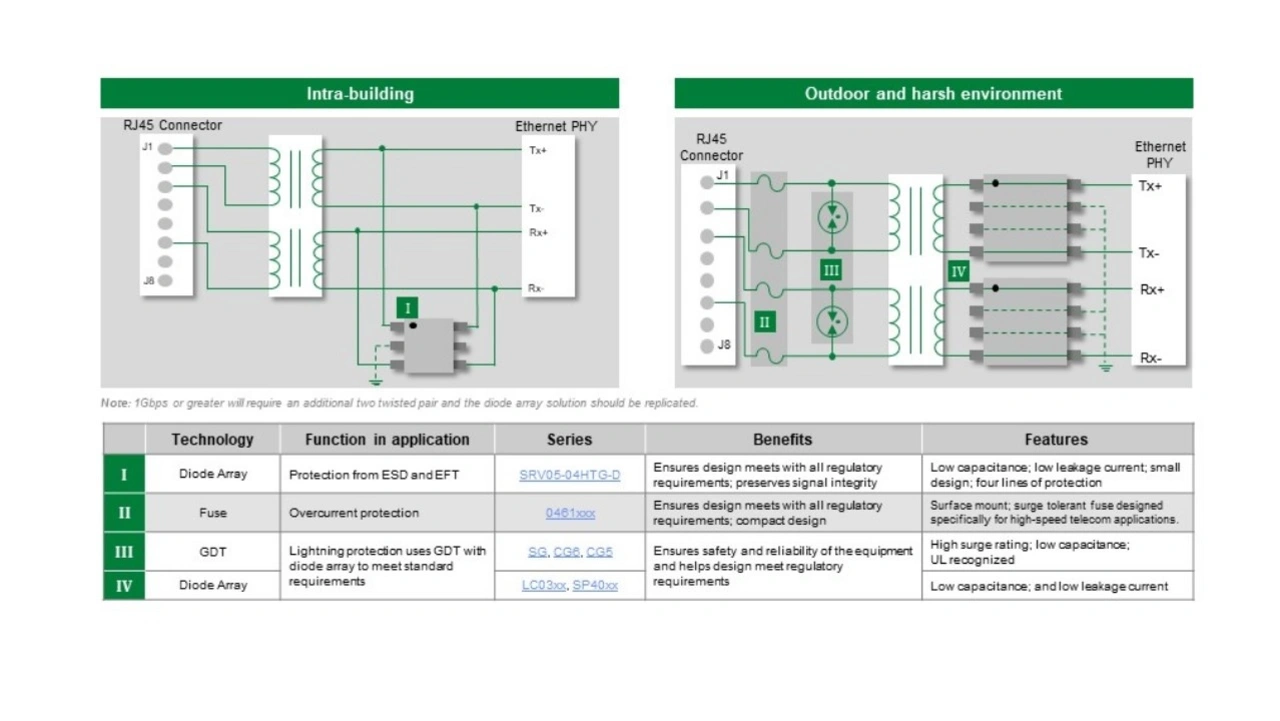Informationen zwischen Daten-Ports auf einem Informationskanal zu übermitteln und zu empfangen, ist das Hauptziel bei der Entwicklung von Datenkommunikationssystemen. Darüber hinaus müssen die Kommunikationssysteme zuverlässig sein, damit sie jederzeit funktionieren und wichtige Daten nicht verloren gehen oder Übertragungen unterbrochen werden. Für robuste und zuverlässige Kommunikationssysteme müssen die Entwickler die Auswirkungen der äußeren Umgebung auf ihre Datenanschlüsse berücksichtigen. Störungen wie Blitzschlag, elektrostatische Entladung (ESD), Überstromstöße und Überspannungstransienten können die integrierten Kommunikationsschaltungen (ICs) beschädigen. Entwickler stehen vor der Herausforderung, Schutzmaßnahmen gegen diese Störungen in ihre Designs zu integrieren, ohne die Leistung ihrer Schaltungen zu beeinträchtigen. Zugleich müssen sie die Größenanforderungen einhalten und die Kosten im Blick behalten. Dieser Artikel, der erste einer dreiteiligen Serie, soll Elektronikentwicklern bei der Bewältigung dieser Herausforderungen helfen, indem er Schutzmaßnahmen für ihre Datenport-Designs vorstellt. Teil 1 gibt Schutzempfehlungen für Power over Ethernet (PoE). Im zweiten und dritten Teil wird der Schutz von High-Speed- und Low-Speed-Schnittstellen behandelt.