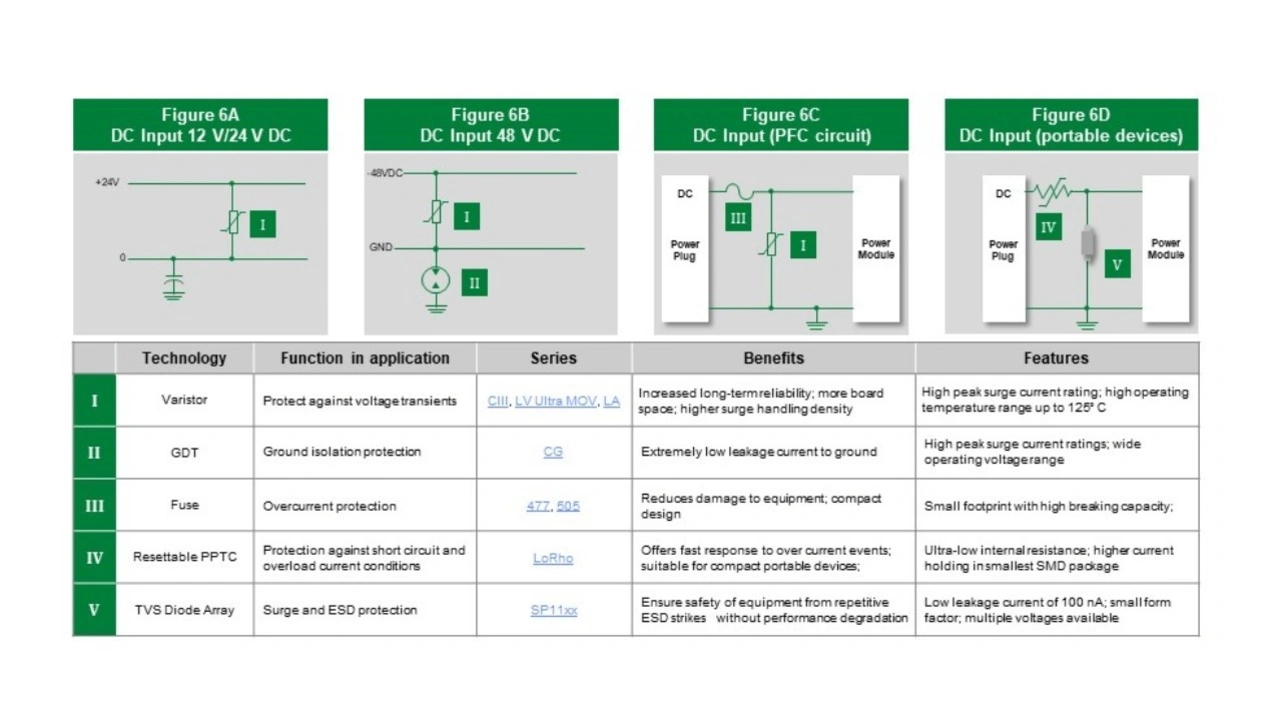Je nach Spannung des Stromkreises und der Anwendung eignen sich verschiedene Schutzsysteme für die Eingänge von Gleichstromversorgungen. Für jede Art von Stromkreis gibt es unterschiedliche Empfehlungen.