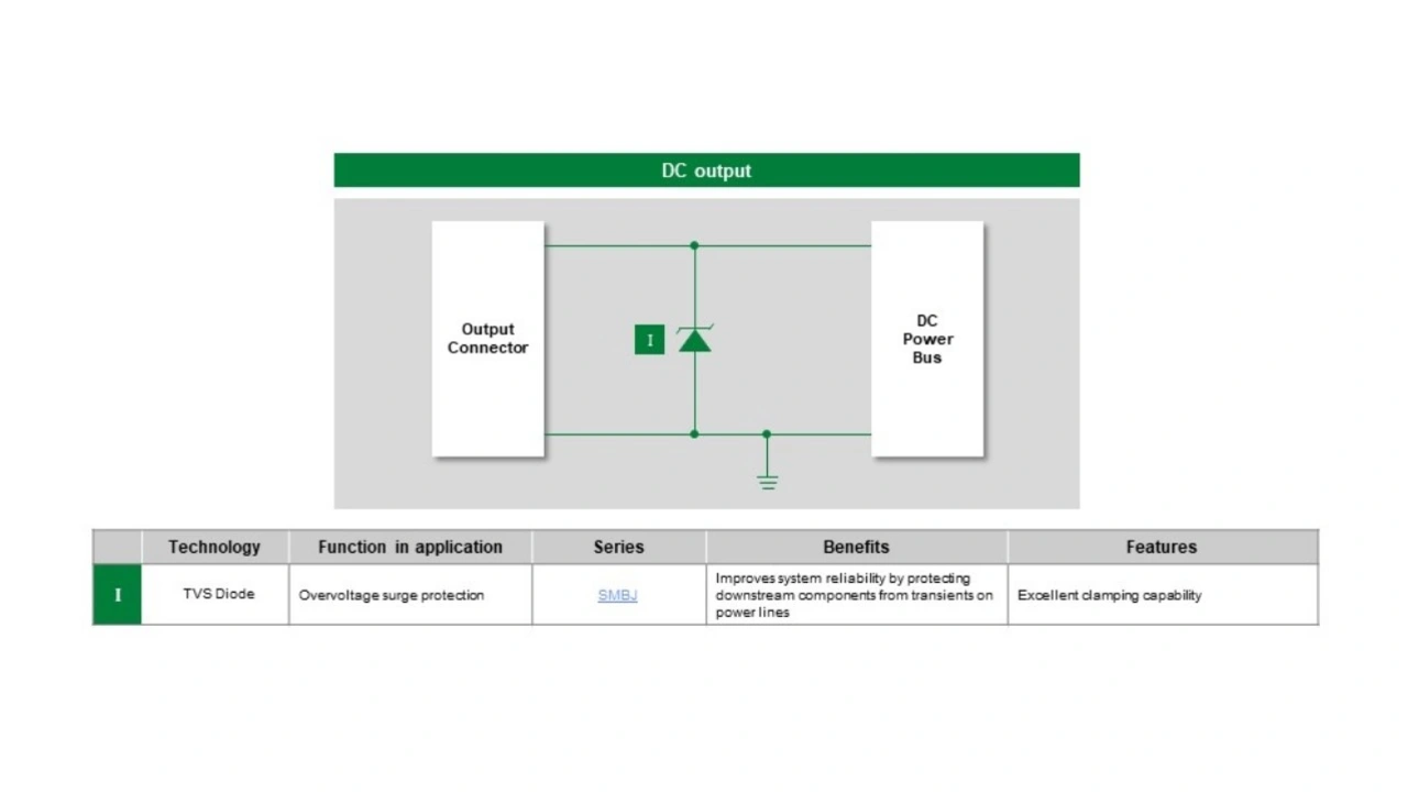 Der Ausgang der Gleichstromversorgung sollte ebenfalls angemessen geschützt sein. Eine TVS-Diode, wie in Abbildung 7 dargestellt, schützt empfindliche nachgeschaltete Schaltungen, indem sie Transienten auf niedrige Spannungen begrenzt. Diese TVS-Dioden sind entweder in uni- oder bidirektionaler Ausführung erhältlich.