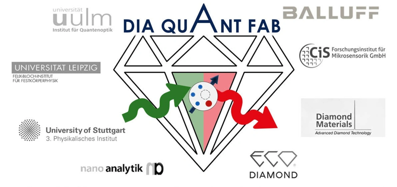Das Projekt »DiaQuantFab« zielt darauf ab, die Grundlagen für eine Wertschöpfungskette für Diamant-Quantensensoren aufzubauen. »Bisher gelingt es nur in universitärem Maßstab mit solchen Quantensystemen zu arbeiten«, heißt es in der Projektbeschreibung. Projektziel ist die Entwicklung von gemeinsamen Qualitätsstandards entlang der Prozesskette, angefangen ab der Diamanten-Synthese über Baugruppen bis zur industrierelevanten Applikation. Aus einem einheitlichen Verständnis von Messgrößen könnten, so die Projektleiter, die bisher fehlenden Qualitätsstandards abgeleitet werden. So soll eine durchgehende Wertschöpfungskette entstehen. Im Fokus stehen industrietaugliche Verfahren zur Diamantsynthese und Diamantbearbeitung. Als Machbarkeitsnachweis werden mit den entwickelten Baugruppen zwei Demonstratoren gefertigt: ein industriell einsetzbarer hochsensitiver Magnetfeldsensor und ein kalibrationsfreies Amperemeter.