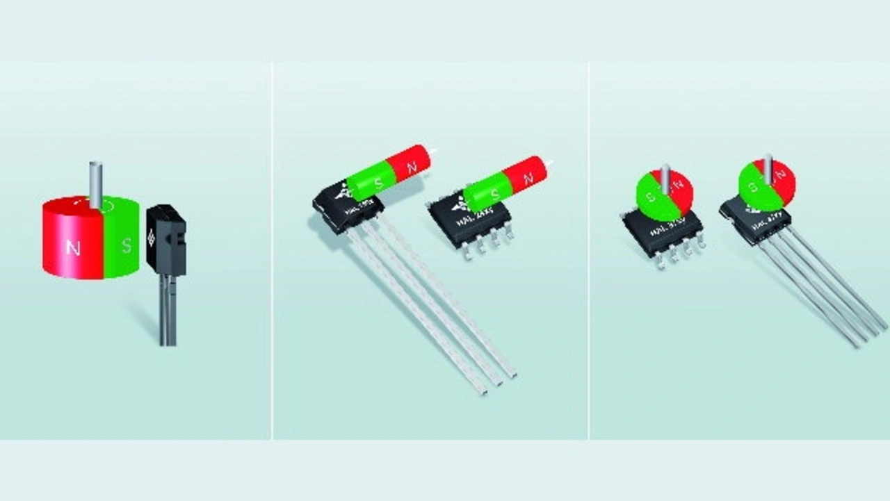 TDK bietet dafür zwei Micronas-Schalterfamilien an: die programmierbaren Schalter der Serien HAL 10xy und HAL 15xy mit vordefinierten Kennwerten. Die HAL-15xy-Familie wurde in erster Linie für Automotive-Applikationen konzipiert und erfüllt die Anforderungen an Funktionale Sicherheit entsprechend ISO 26262. Diese Schalter sind in den Gehäusen TO92 und SOT23 als 3-Draht- oder 2-Draht-Version erhältlich. Letztere besitzt einen Stromquellenausgang und kommt dadurch mit nur zwei Zuleitungen aus. Typische Anwendungen für Hall-Schalter sind Endpositionserkennung und Drehzahlmessung.