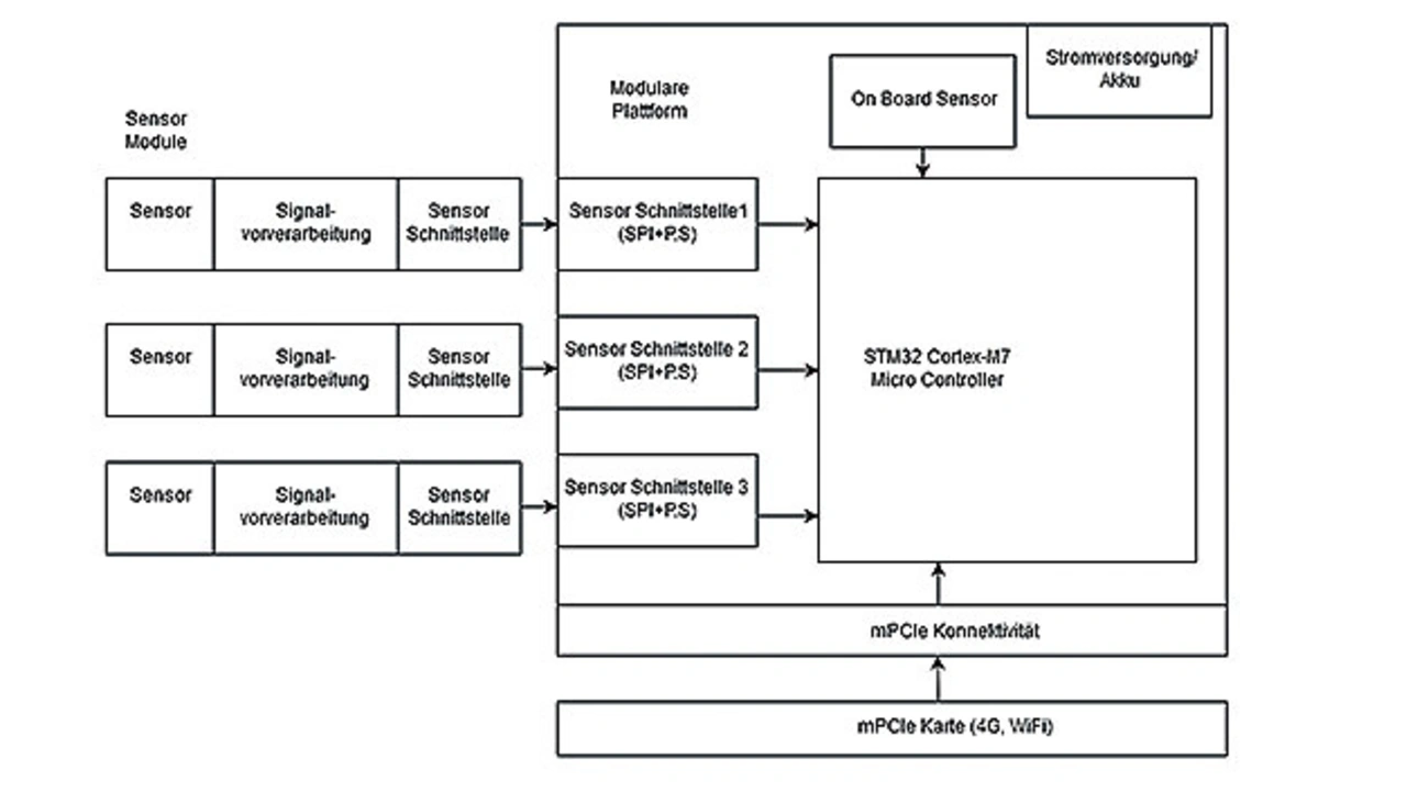 Am Fraunhofer IPT wurde ein modularer 5G-Multisensor entwickelt (Bild 1), mit dem ein flexibles Überwachungssystem aufgebaut werden kann. Er verfügt über drei Hardware-Schnittstellen, über die beliebige Sensormodule angeschlossen werden können.