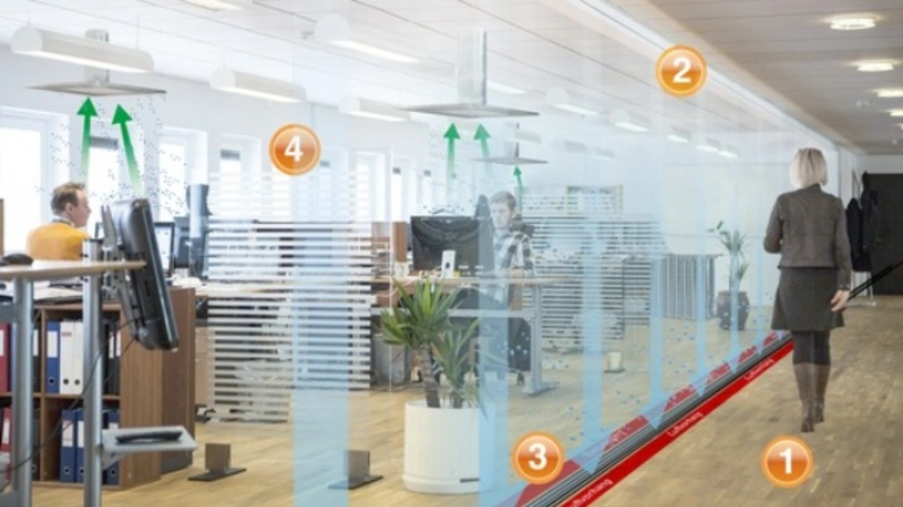 Kommunikation in geschlossenen Räumen ohne Maske und Mindestabstand? In Zeiten der Corona-Pandemie kaum noch denkbar. Doch ein neues lufttechnisches System soll nun endlich wieder für mehr Normalität im Umgang miteinander sorgen.