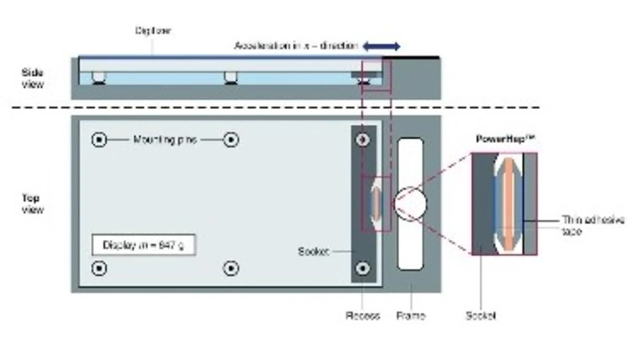 Neben den vier quadratischen Varianten, die für den Einsatz in Flächen ausgelegt sind, hat TDK auch vier rechteckige, schmale Typen entwickelt, die neben dem senkrechten auch ein laterales Feedback erzeugen können. Die beiden kleinsten Ausführungen mit Längen von 9 mm beziehungsweise 12 mm eignen sich für Smartphones und Tablets, Haushaltsgeräte, Spielekonsolen, VR/AR-Ausrüstung, Smartwatches, Digitizer oder medizinische Handgeräte. Die beiden größeren Varianten mit Kantenlängen von 60 mm sind die derzeit leistungsstärksten PowerHap-Typen, da hier Kräfte von bis 50 N erzeugt werden können und sich Massen von bis zu 1 kg bewegen lassen. So kann man sie zum Beispiel seitlich an Displays verbauen, um ein horizontales haptisches Feedback zu erzielen (Bild 5).
