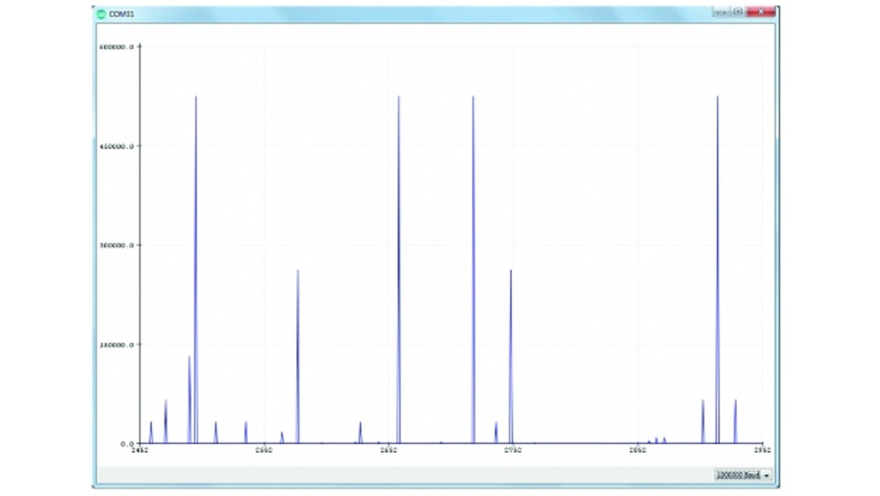 Für die Mikrofon-Platine sind die Bibliotheken bereits vorinstalliert. Für das Beispielprogramm (SoundPressureLevel, Bild 7), das sich über Datei – Beispiele – I2S laden lässt, wird lediglich die Datei I2S.h benötigt. Im Bild 8 ist die Ausgabe des Programms im seriellen Plotter der Arduino-IDE zu erkennen.