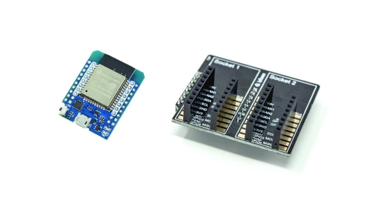 Die Adapterplatine wird als kompatibel zum Wemos-Formfaktor bezeichnet, der von der gleichnamigen chinesischen Firma definiert wurde und die Größe und Belegung der Steckerleiste auf der ESP-WROOM-32-Platine beschreibt. Letztendlich ist dies die gleiche Belegung wie die der S2Go-Boards (Bild 4), nur der Abstand der Leisten voneinander ist unterschiedlich. Beide Varianten verhindern im Übrigen nicht, dass ein Modul aus Versehen nicht auch falsch herum aufgesteckt werden kann.