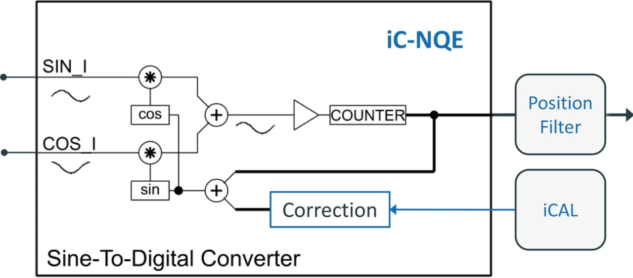 Die bekannten iC-NQx-Bausteine bedienen vorrangig lineare Wegmesssysteme mit inkrementeller Ausgabe, aber auch Messtaster und IPC-Messkarten, die Signalperioden mitzählen. Für alle diese Anwendungen erlaubt der iC-NQE eine Performance-Aufrüstung; eine kompatible Variante mit 20-poligem TSSOP-Gehäuse ist vorgesehen.