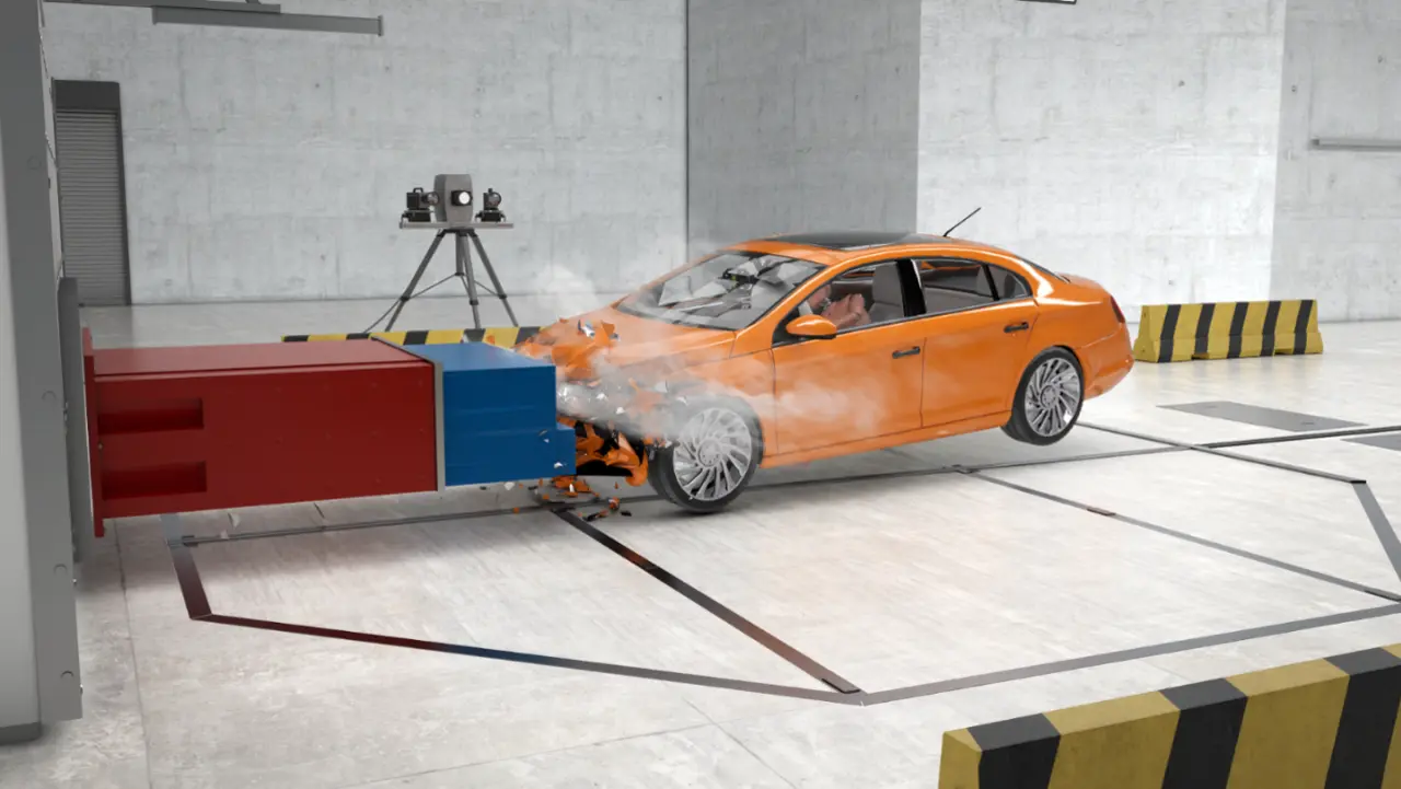 Der neue 3D-Sensor des Fraunhofer IOF kann erstmals Hochgeschwindigkeits-3D-Aufnahmen im Fahrzeug-Innenraum während eines Crashtests durchführen und zeigt Verformung und Bewegung von Fahrzeugkomponenten während eines Aufpralls.