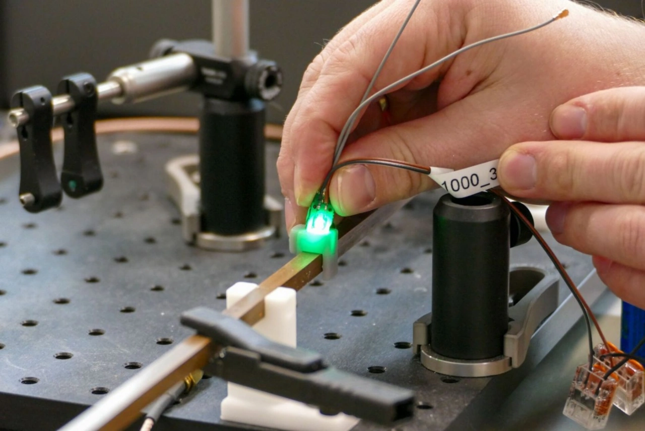 Glösekötter und sein Team forschen gemeinsam mit der Arbeitsgruppe um Prof. Dr. Markus Gregor vom Fachbereich Physikingenieurwesen bereits seit Längerem an industrietauglichen Quantensensoren auf Basis von NV-Zentren. Anders als in Pogorzelskis Promotionsprojekt »OCQNV« (Optische Wellenleiter- und CMOS-Schnittstelle für Quantensensoren mit NV-Zentren) entwickeln die Wissenschaftler beispielsweise im parallel laufenden Projekt »RaQuEl« (Raumtemperatur-Quantensensorik für die Elektromobilität) Sensoren ohne Mikrowellen, deren Pluspunkt unter anderem das noch schlankere Design ist. »Mikrowellen regen die quantenmechanischen Zustände in NV-Zentren an. Dadurch lässt sich die magnetische Sensitivität präziser steuern und auslesen, was die Leistungsfähigkeit in Bereichen wie Quantencomputing signifikant verbessert«, erläutert Glösekötter den wesentlichen Unterschied der beiden Ansätze.