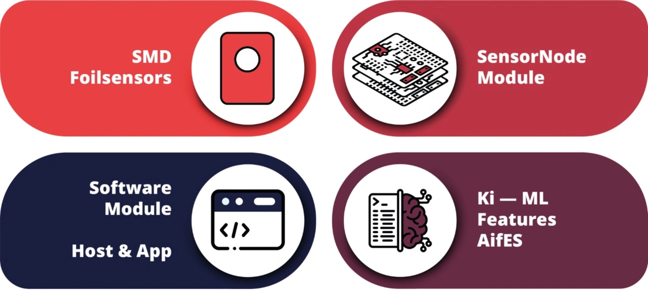 Neben dem Controller- und Energiemodul stehen weitere Module mit MEMS-Sensoren zur Verfügung, wie Gyro- und Beschleunigungssensor, akustische und optische Sensoren, Kraft- und Drucksensoren, die ein breites Spektrum an hochintegrierter Sensorfunktionen abdecken.