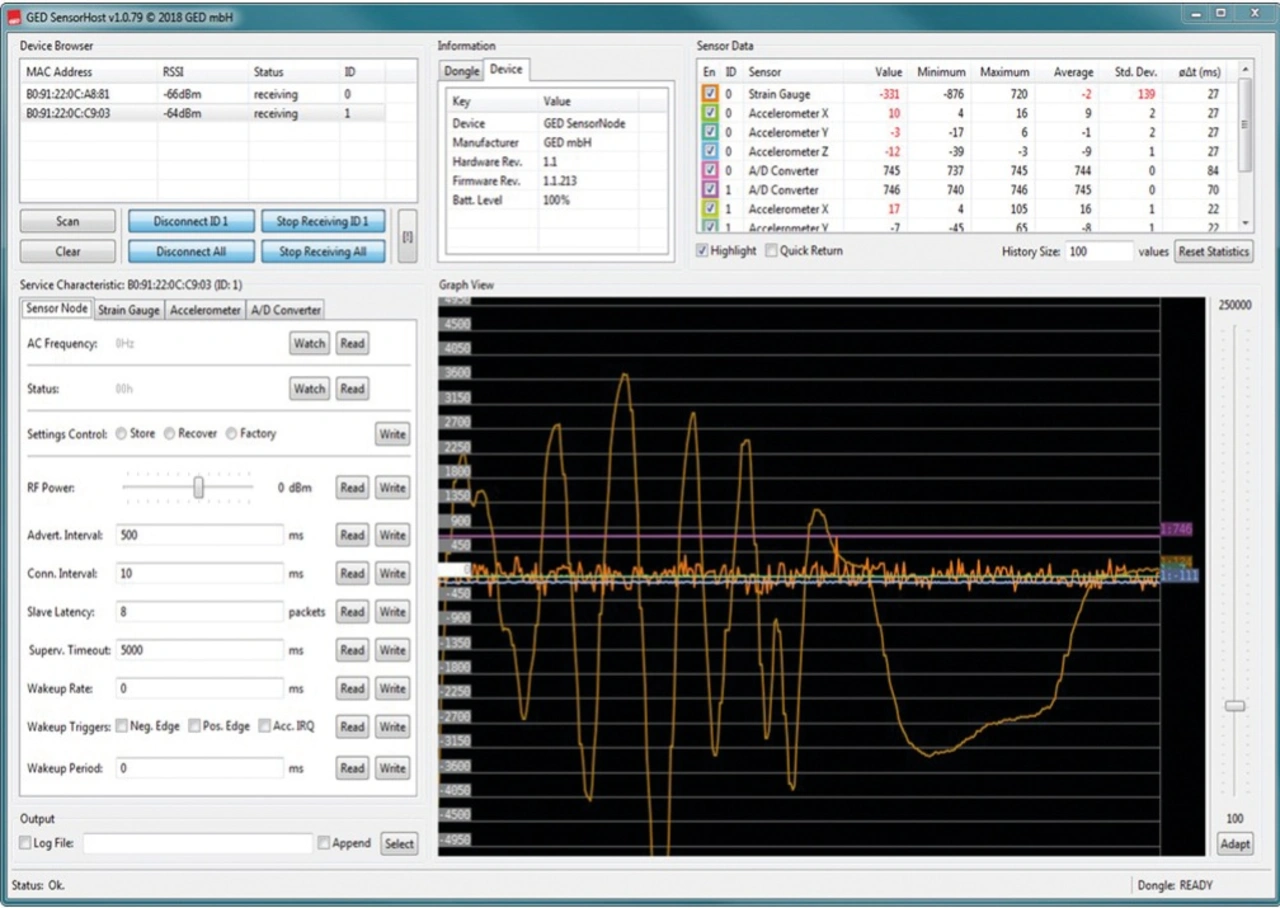 GED ergänzt mit dem SensorNode-Hard- und Softwarebaukasten die Möglichkeit für die einfache Konfiguration eines miniaturisierten leistungsstarken Multi-Sensorsystems. Mit Steckmodulen, die nicht größer als ein Stück Zucker sind (16 mm × 18 mm), ist der GED-SensorNode äußerst kompakt und kann selbst in engen Bauraumverhältnissen eingesetzt werden. Dank integriertem Bluetooth-Funk, Akku sowie optionalem Energy-Harvesting sind keine Kabel notwendig.