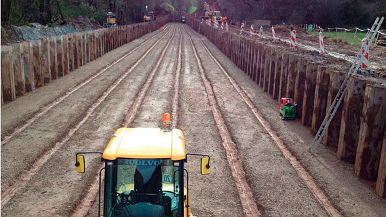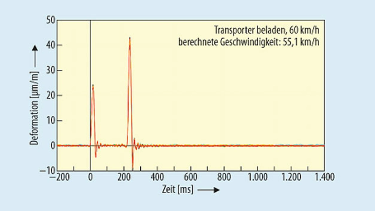 Praktisch angewendet wird dieses Verfahren zur Überwachung von Großbauwerken wie Strecken der Bahn (Bild 4), Brücken und Tunneln. Die Messungen beginnen bereits während der Bauzeit und laufen nach Fertigstellung weiter. Damit lassen sich kleinste elastische Verformungen (Bild 5) ebenso wie plastische Verschiebungen und Senkungen im Boden nachweisen. Wird die Faser in einem Mäandermuster verlegt, sind die Veränderungen auch zweidimensional erfassbar.