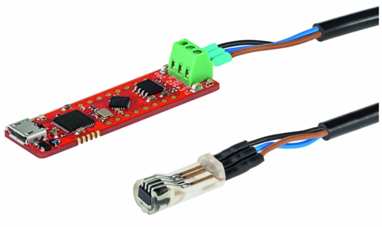 Auch für Applikationen mit dem TLE49222 steht ein einfach einsetzbares Kit zur Verfügung, der Speed-Sensor-2Go (Bild 6). Das Kit besteht aus dem Sensor (TLE4922-XAN) und einem Back-Bias-Magneten (Ferritmagnet von Bomatec). Für die Verbindung zum PC sorgt wiederum ein USB-Steckverbinder.