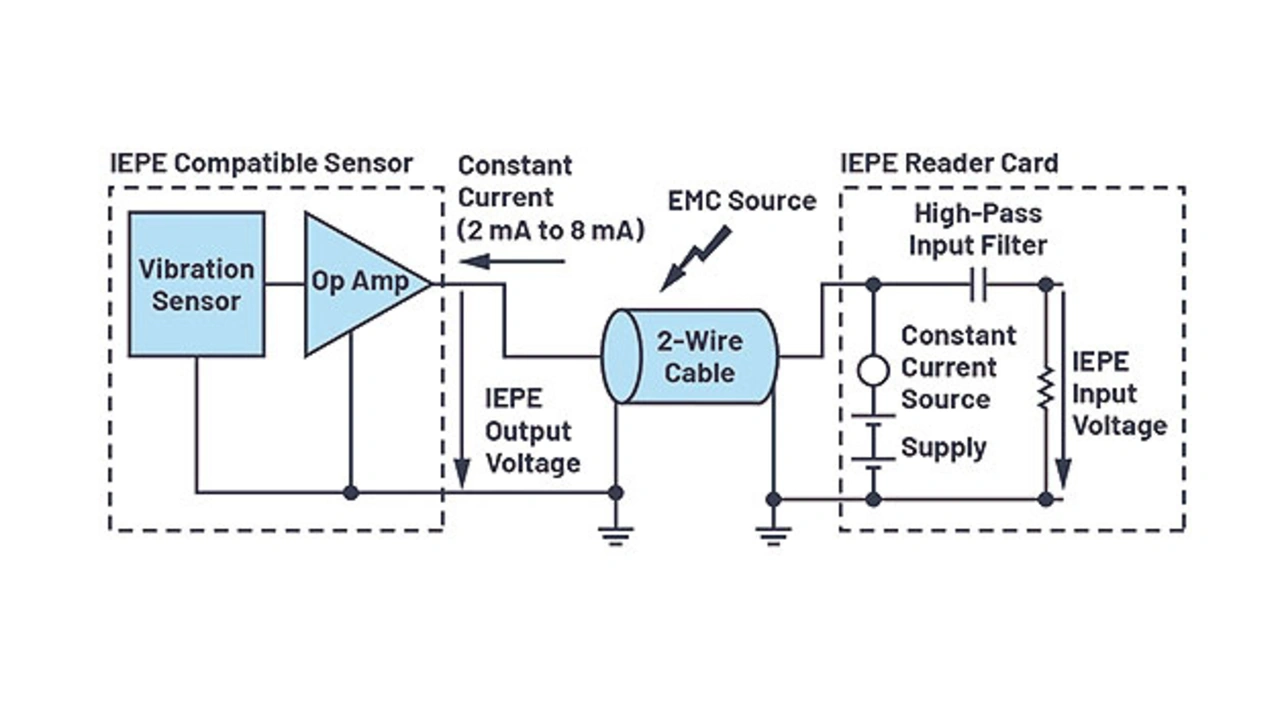 Das hochintegrierte Leiterplattendesign, bei dem sich Stromversorgung und Datenübertragung Teile des Schaltkreises teilen (Phantom Power), erschweren die Filterauswahl. Weit verbreitet bei Vibrationssensoren ist der IEPE-Standard.