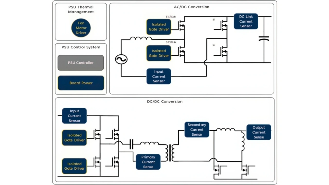 Gerade im Totem-Pole-PFC (Power Factor Correction) ist die Strommessung ein kritischer Bestandteil der digitalen Regelung. Moderne Controller berechnen die Ansteuerung häufig auf Basis hochauflösender Strommesswerte innerhalb weniger Mikrosekunden. Verzögerungen im Sensorsignal wirken sich daher unmittelbar auf die Genauigkeit der Leistungsfaktorkorrektur sowie auf die dynamische Lastregelung aus.