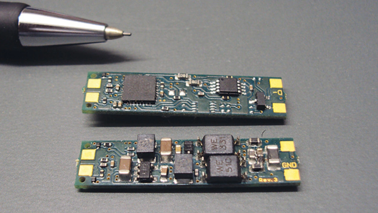 Parallel hierzu liegt ebenfalls von Digiraster ein weiteres stark miniaturisiertes System (Bild 4) vor, das über ein bis drei Eingänge für Pt100 verfügt. Die Platine ist mit einer Baugröße von 32 × 8 mm² extrem kompakt und kann somit einfach direkt in ein Kabel oder einen Stecker integriert werden. Dieses System liegt aktuell nur mit einem Modbus Interface vor.