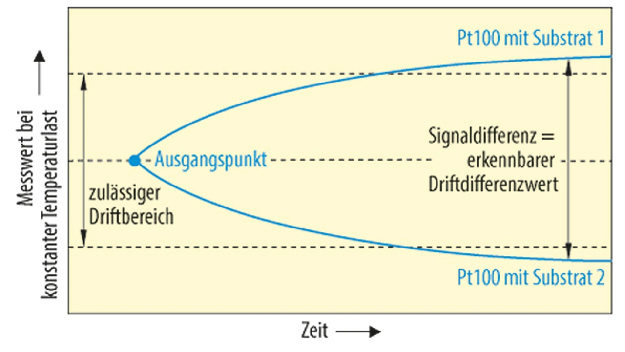 Die Auswertung bietet nun verschiedene Möglichkeiten. Im einfachsten Fall wird ein Sensor als Mastersensor definiert und laufend mit den anderen Sensoren verglichen. Bei zunehmender Abweichung erfolgt eine entsprechende Warnmeldung an den Anwender. Bei der erweiterten Auswertung wird der Messwert aus dem zeitlichen Mittelwert der drei Sensoren gebildet. Darüber hinaus wird über bestimmte Zeitintervalle die Abweichung der Sensoren zueinander bestimmt und daraus eine Driftaussage (Bild 7) abgeleitet. Bei Überschreiten vorab festgelegter Grenzwerte erfolgt wiederum eine Warnung an den Anwender. Darüber hinaus kann auch ein Ausfallszenario für einen einzelnen Sensor implementiert werden, sodass bei eindeutigem Ausfall eines Sensors der sichere Betrieb inklusive einer vereinfachten Driftüberwachung weiter gewährleistet werden kann. Das System bietet somit neben einer sehr hohen Grundgenauigkeit auch eine hohe Prozesssicherheit und eine integrierte Driftüberwachung.