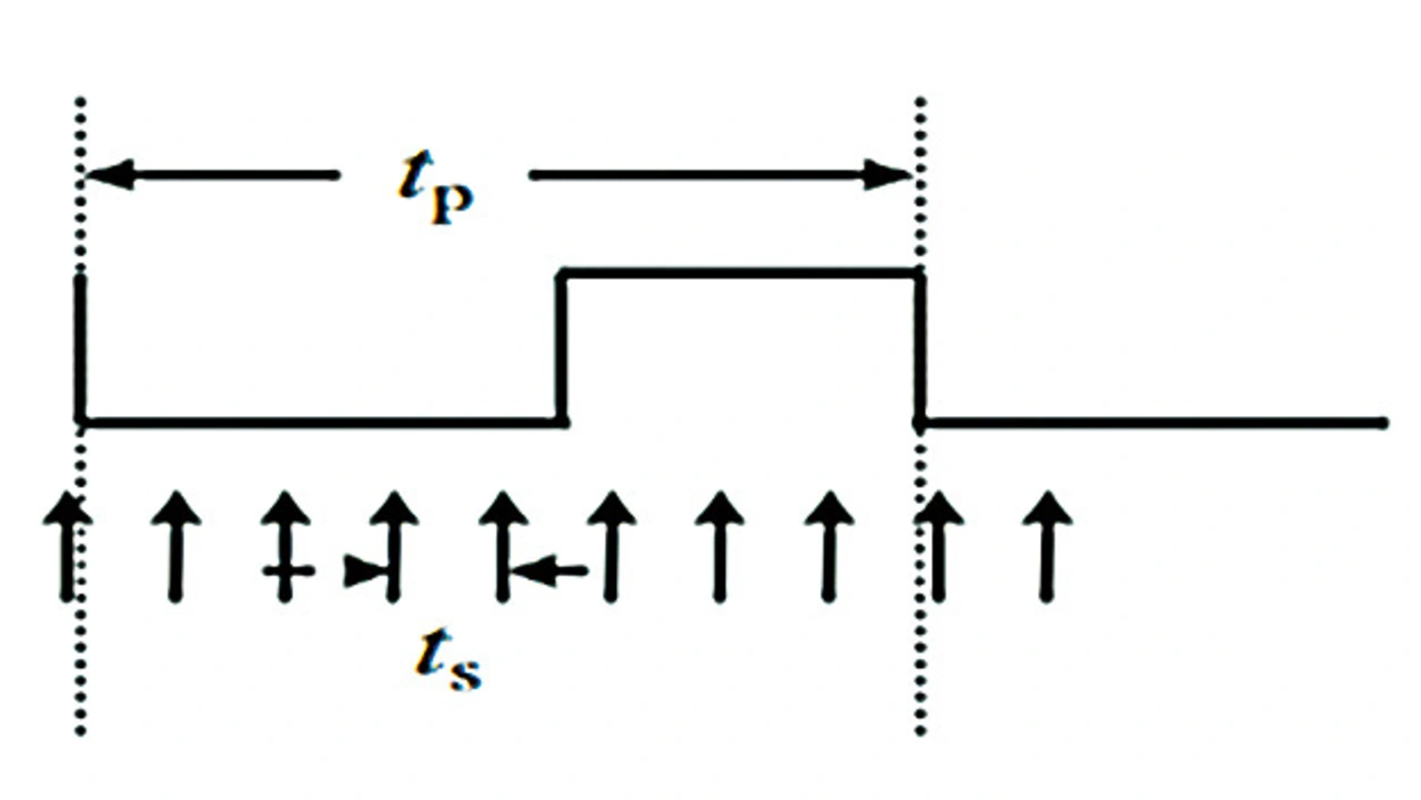 Bei der Pulsweitenmodulation wird ein periodisches Signal, die Trägerwelle, zur Übertragung von Informationen verwendet. Die Information wird durch die Breite der Impulse im Verhältnis zur Periodendauer codiert. Eine längere Impulsbreite steht für einen höheren Temperaturwert, eine kürzere für einen niedrigeren.