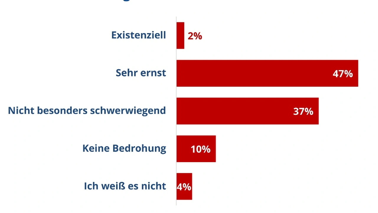 ...durch die Auswirkungen des Kriegs in der Ukraine, befürchten fast die Hälfte der AMA-Mitglieder eine sehr ernste Bedrohung für das eigene Unternehmen. Die andere Hälfte erkennt derzeit keine schwerwiegende Bedrohung für das eigene Unternehmen.