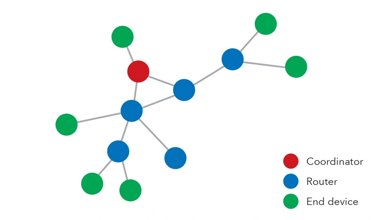 Um die Vorteile von NeoMesh besser verstehen zu können, ist es sinnvoll, es mit älteren Mesh-Netzwerktechnologien zu vergleichen, die in Bezug auf Skalierbarkeit und Energieeffizienz Einschränkungen aufweisen. Ältere Mesh-Netzwerke sind als hierarchisches System organisiert, in dem verschiedene Knoten unterschiedliche Fähigkeiten und Funktionen innerhalb des Netzwerks haben. Eine typische Topologie ist in Bild 1 dargestellt.