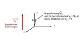 Wenn wir annehmen, dass die Z-Achse (siehe Bild 3) parallel zum angelegten Feld ist, dann präzediert oder rotiert der Spin um die Z-Achse entlang eines Kegels mit einer Winkelgeschwindigkeit ω0.
