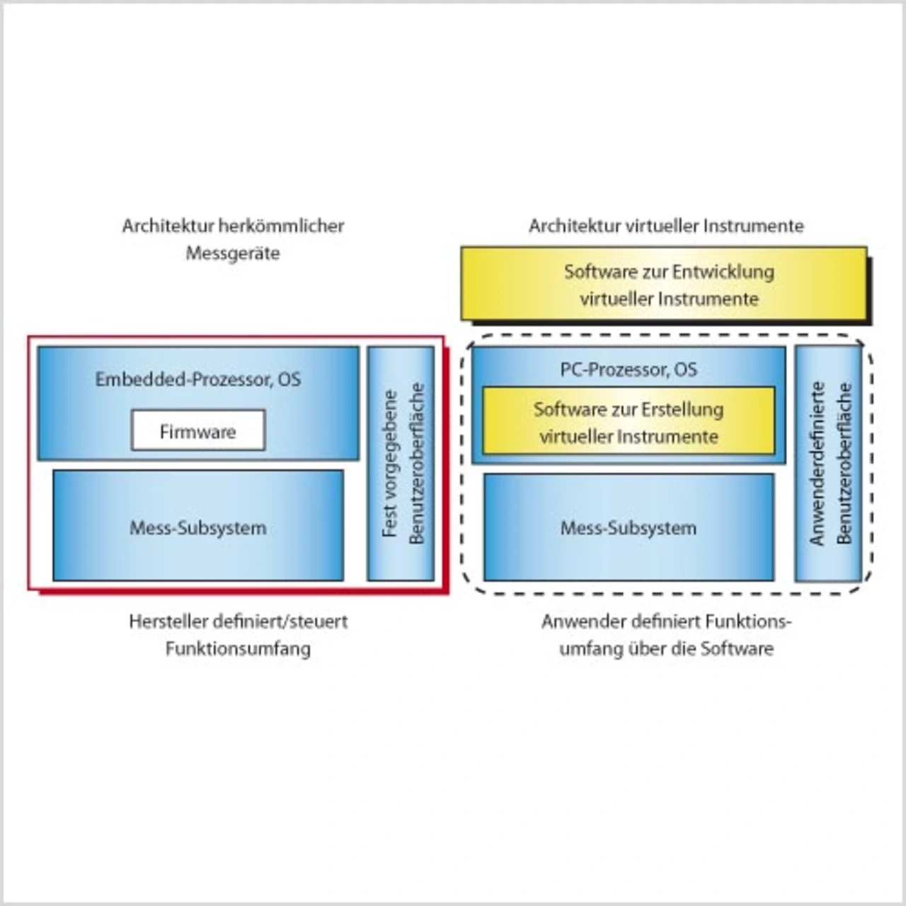 Alle diese Beispiele belegen die Akzeptanz und Verbreitung des Konzepts der „virtuellen Instrumente“, das in seinen Architekturprinzipien in Bild 2 näher charakterisiert ist.