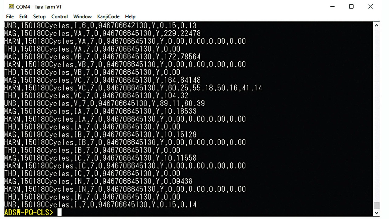 Für die Distribution an Endanwender wird die Bibliothek als CMSIS-PACK-Datei (.pack) mit Kompatibilität zu Keil Microvision, IAR Embedded Workbench Version 8.x oder Analog Devices CrossCore Embedded Studio zur Verfügung gestellt. Die Lizenzgebühr für die Softwarebibliothek ist im Kaufpreis des ADE9430 enthalten. Ein exemplarisches serielles PC-CLI (Command Line Interface) steht zum Evaluieren der Bibliothek und ihrer Features zur Verfügung. Die Darstellung der Spannungsqualitäts-Parameter durch das CLI geht aus Bild 6 hervor.
