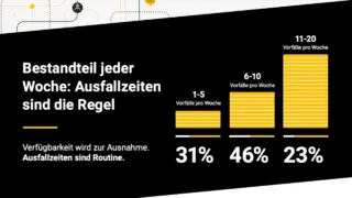 Die befragten Unternehmen meldeten im Schnitt mehr als acht Ausfälle pro Woche. 46 Prozent verzeichneten sechs bis zehn Vorfälle wöchentlich, weitere 22 Prozent sogar 11 bis 20. In über der Hälfte der Fälle dauerten die Stillstände bis zu 12 Stunden, bei 12 Prozent bis zu 72 Stunden. Besonders betroffen sind große Unternehmen: 40 Prozent der Betriebe mit mehr als 50.000 Mitarbeitern berichteten von bis zu 20 Vorfällen pro Woche.