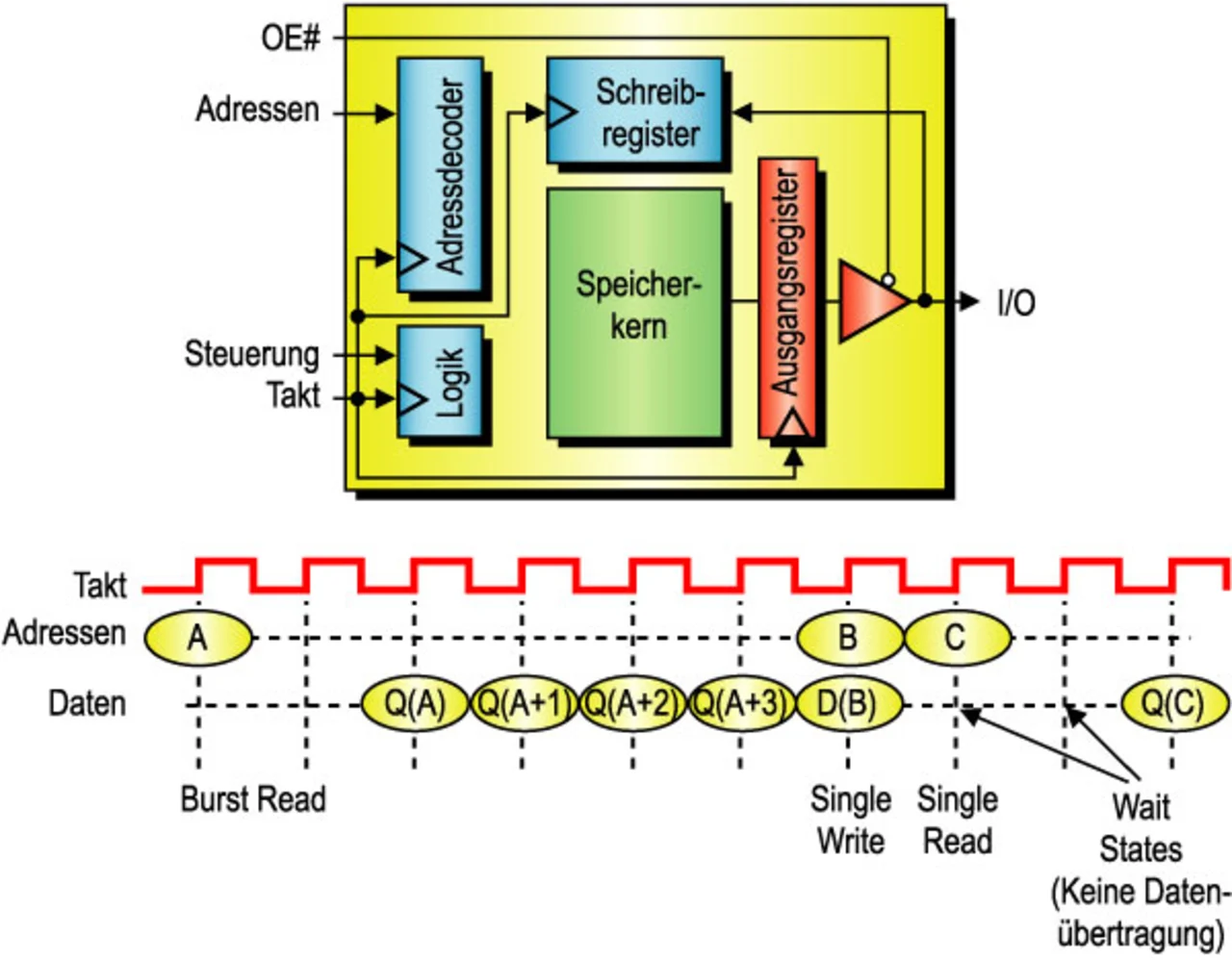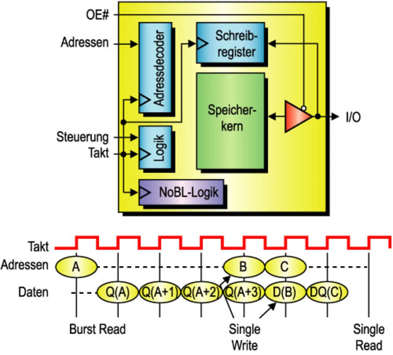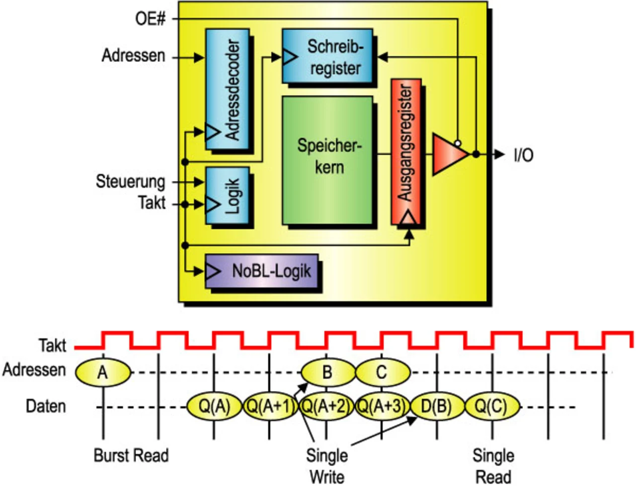 Die interne Architektur der Standard Synchronous SRAMs war so angelegt, dass zwischen Schreib- und Lesezugriffen ein „toter“ Zyklus bzw. ein „Wait State“ eingefügt werden musste. In dieser Phase werden die I/O-Signale des SRAM von Eingang auf Ausgang umgeschaltet. Derartige Zustandswechsel können zu Konkurrenzbetrieb auf dem Bus führen, wenn beide Bauelemente den Bus gleichzeitig ansteuern. Mit einem Wait State lässt sich dieses Risiko vermeiden.