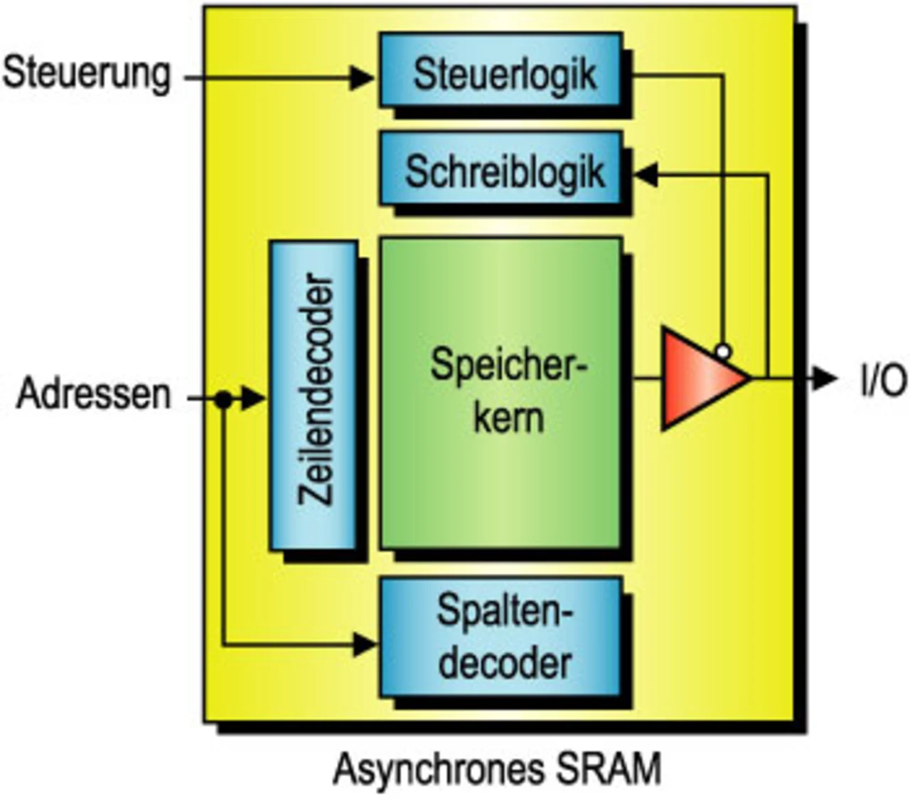 Die typische Zugriffszeit asynchroner SRAM-Bausteine liegt bei 8 ns oder mehr. Deshalb werden diese Bausteine vorwiegend in Systemen mit maximalen Taktfrequenzen von 100 MHz eingesetzt.