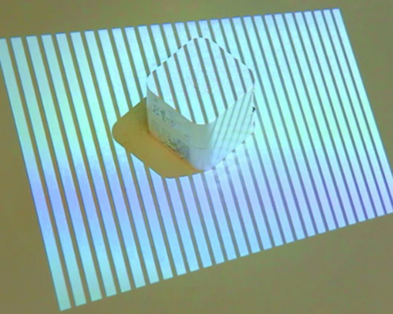 Dabei werden Streifenmuster auf die Oberfläche aufgebracht, die bei entsprechenden Höhenveränderungen eine andere Struktur erhalten und über die oben genannten mathematischen Ansätze dann pro Bildpunkt den errechneten Höhenwert ergeben.