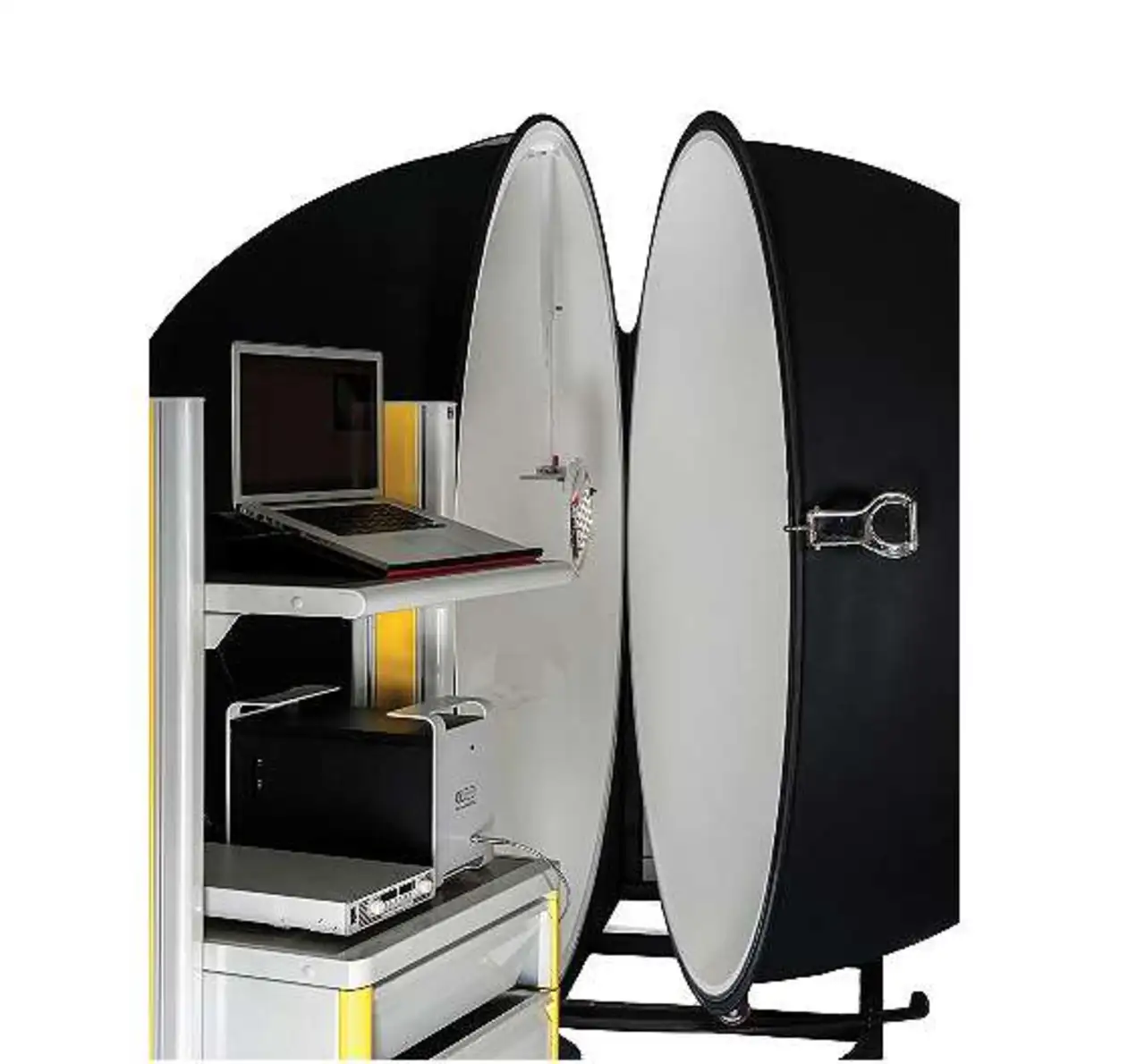 Die neuere GLS 2000 dient für viele lichttechnische Messungen (Bild 1). Durch ihre Größe bietet sie genügend Platz, um komplette Lampen ein-zubringen und die spektrale Leistung des gesamten Produkts zu überprüfen. Das Unternehmen plant, darin seine LED-Tubes und LED-High-Bays zu vermessen. Zur Ausstattung gehören eine Hilfslichtquelle zur Kompensation der Selbstabsorption, eine seitliche Messöffnung zur Bestimmung des Lichtstromes in der 2π-Konfiguration für frontemittierende Lichtquellen und ein einstellbarer Probenhalter