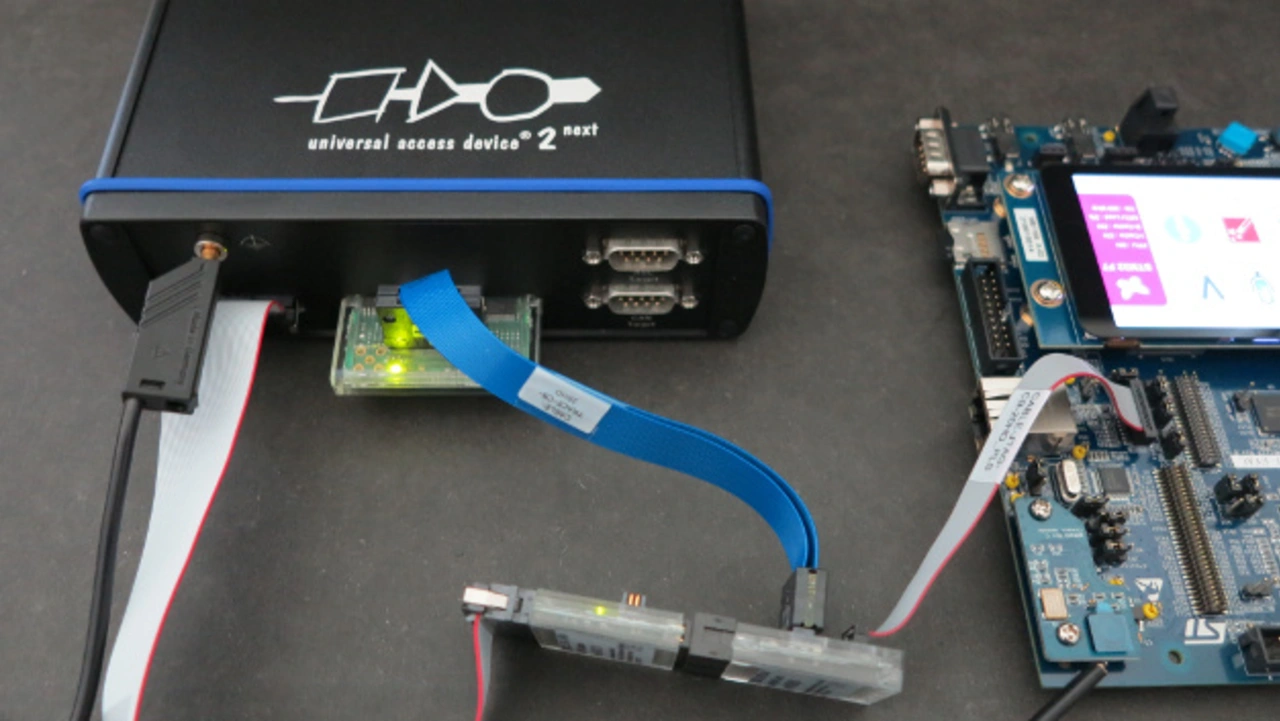 Die höchste Standfestigkeit besitzt wohl das UAD2next (Bild 1), im vollverschlossenen Aluminiumgehäuse in etwa der Größe eines Tetrapacks: Die Verbindung zum Zielrechner erfolgt über USB2.x/USB 3.x oder Ethernet, die Stirnseite zeigt vier Zielschnittstellen Jtag, Trace, Can und ASC. Insgesamt sind drei Adapter zur Verbindung mit der Coresight-Trace auf dem STM32F779NI notwendig. Die Status-LEDs befinden sich gut sichtbar an der Rückseite.